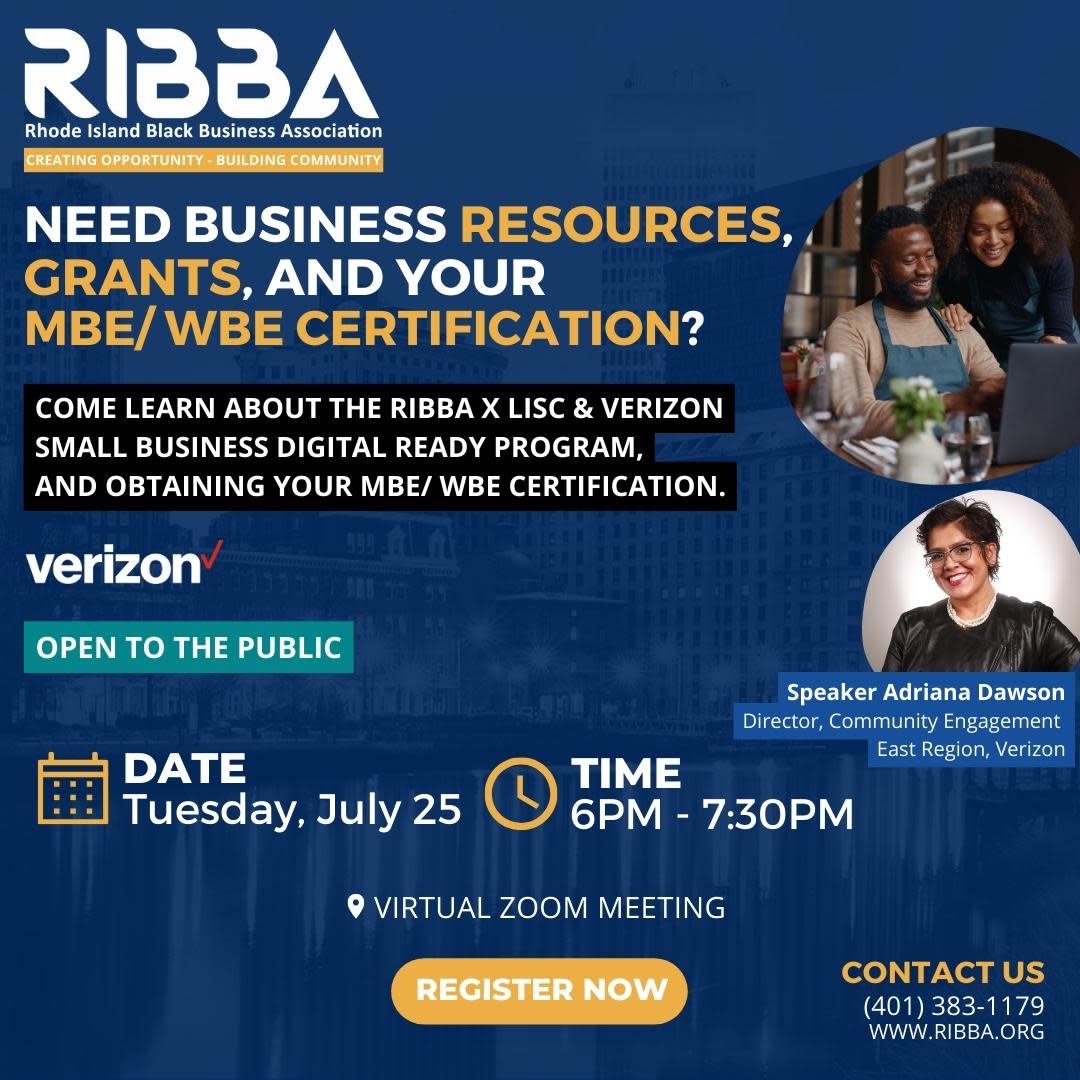 Do you need business resources, grants, and/or your Minority Business Enterprise or Women Business Enterprise (MBE/ WBE) Certification? Are you open to scaling your business but don't know where to start? Join us Tuesday, July 25th from 6PM - 7:30PM to learn about the resources available to Rhode Island small business owners.